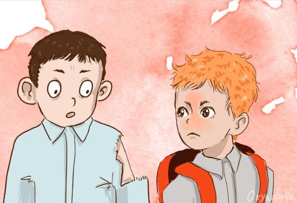 И все бы хорошо, но на следующий день тот мальчишка подбежал к Мирону и ударил его портфелем по голове. Мирон уже не выдержал такого отношения к себе и дернул со всей силы мальчишку за рукав, порвав ему рубашку. Хулиган не ожидал такого отпора, испугался и убежал.