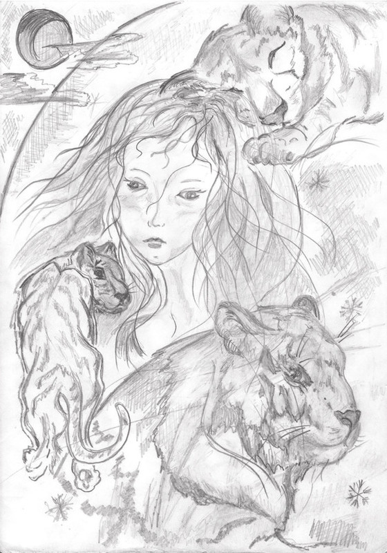 Утреннее пение птиц разбудило ее. Она лежала одна, тело тигра исчезло. Поднявшись, Снежинка побрела в лес, плохо соображая, что она делает. Очень скоро девушка наткнулась на тропинку, петляющую между деревьями. В лесу весело щебетали птицы, но она не замечала их пения. Слезы заполняли ее глаза, стекая ручейками вдоль щек и падая на согретую солнечным теплом землю. Когда солнце стало клониться к закату, тропинка вывела ее к мосту через реку. Снежинка поднялась на мост и, пройдя несколько шагов по нему, остановилась. На другом конце моста, над воротами замка висел герб в виде снежинки. Внутри герба изготовившись к прыжку замер тигр. Герб ярко сиял в лучах заходящего солнца. Забыв об усталости, Снежинка бросилась к открытым воротам. Навстречу ей вышел молодой человек в сопровождении слуг. Скорее всего, это был хозяин замка. На руках у него лежал белый пушистый комочек. Это был маленький тигренок. На его шее висела золотая цепочка с кулоном в виде снежинки. Глаза тигренка смотрели не по-детски серьезно и строго…