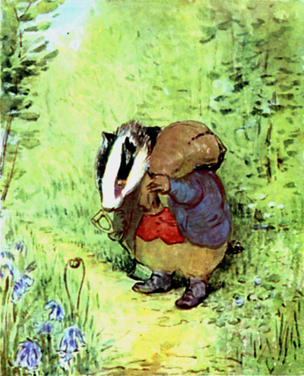 He made his way up the hill; his temper was not improved by noticing unmistakable marks of badger. No one else grubs up the moss so wantonly as Tommy Brock.