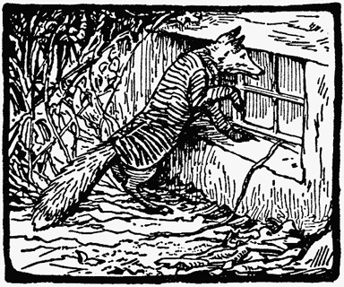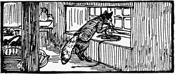 Mr. Tod's stick house was before him and, for once, Mr. Tod was at home. There was not only a foxey flavour in proof of it—there was smoke coming out of the broken pail that served as a chimney.