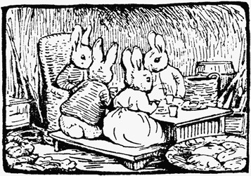 After quarrelling at supper, Flopsy and old Mr. Bouncer had passed a sleepless night, and quarrelled again at breakfast. Old Mr. Bouncer could no longer deny that he had invited company into the rabbit hole; but he refused to reply to the questions and reproaches of Flopsy. The day passed heavily.