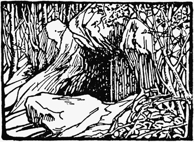 He hurried round the house to get a shovel from the kitchen—"First I will arrange the hole—then I will drag out that person in the blanket...."