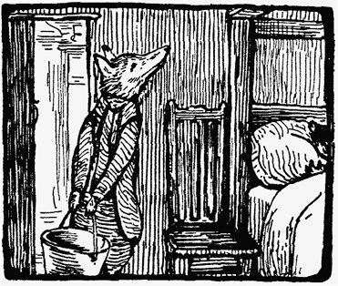 Mr. Tod and the pail descended from the chair without accident. After considerable thought, he emptied the water into a wash-basin and jug. The empty pail was not too heavy for him; he slung it up wobbling over the head of Tommy Brock.