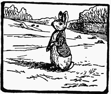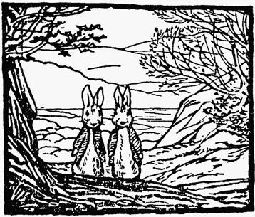 Benjamin Bunny came out of the dark tunnel, shaking the sand from his ears; he cleaned his face with his paws. Every minute the sun shone warmer on the top of the hill. In the valley there was a sea of white mist, with golden tops of trees showing through.