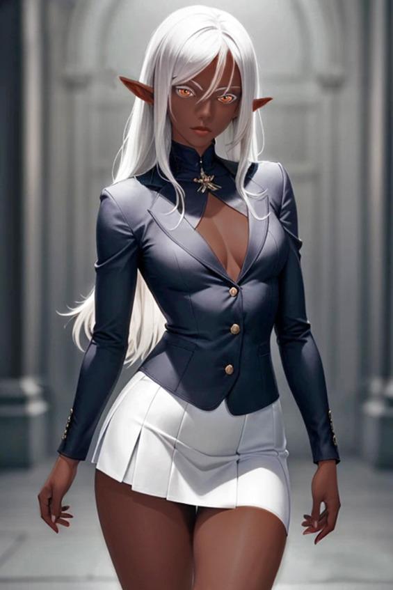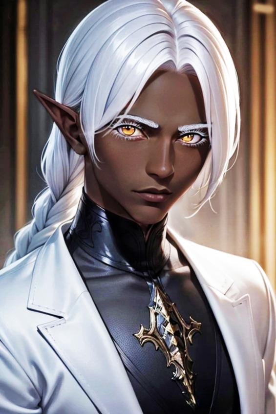 Девушка медленно обернулась. Перед ней стоял молодой эльф подтянутого стройного телосложения, примерно выше её на голову. В кожаной одежде с цветными вставками и слишком откровенном облегающем топе. Всё это смотрелось довольно эффектно на почти черной с легким шоколадным отливом коже. Белые волосы были стянуты в длинный хвост сиреневым ремешком. Глаза цвета спелой вишни внимательно смотрели на землянку. Характерные для его расы длинноватые заострённые уши. Он инстинктивно расправил плечи, показывая себя во всей красе. Это уже давно вошло в привычку, когда на него смотрела женщина. Однако наткнулся на равнодушие в серых глазах землянки.