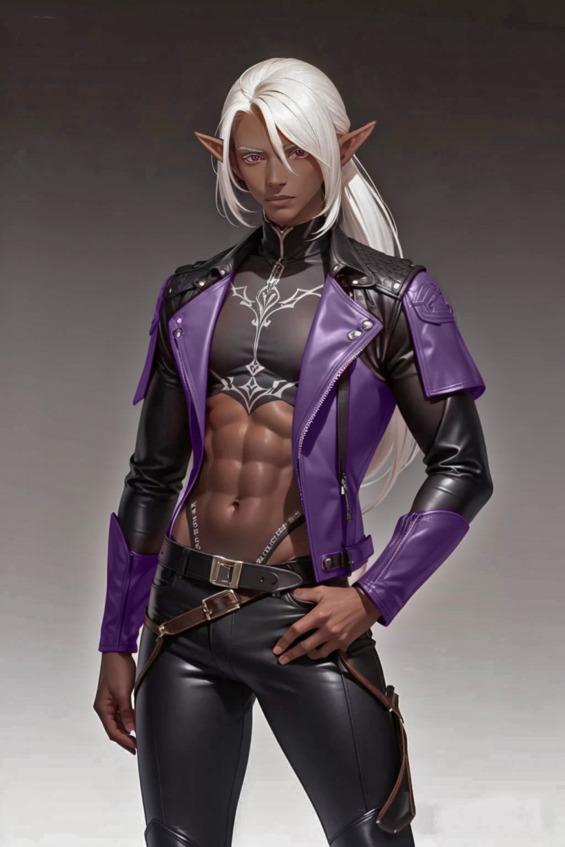Кожаные брюки плотно облегали литые бедра. Черная кожаная короткая куртка с фиолетовыми вставками и топ, едва прикрывающий грудь, оставляя на обозрение кубики тренированного пресса. Приличие в понимании дроу — вещь весьма относительная. Прикрытые гениталии — это и есть приличие. Так что мальчиков-дроу с детства приучают не стесняться своей наготы. В том, что он в своей одежде мог понравиться любой землянке, дроу не сомневался. Да и на байке в этом наряде ездить удобнее, чем в деловом костюме. Так он размышлял, решив ничего не менять.