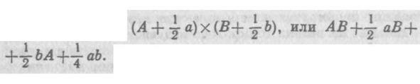 9. Рассмотрев сам предмет, я далее приступаю к рассмотрению принципов этого нового анализа при помощи моментов, флюксий или бесконечно малых величин; если в результате окажется, что ваши главные положения, от которых, как полагается, зависит все остальное, содержат ошибки и ложные заключения, то отсюда будет следовать, что вы, не знающий, куда направить самого себя, не можете, хотя бы из чувства простой скромности, быть руководителем для других людей. Главное в методе флюксий заключается в том, чтобы получить флюксию, или скорость движения (momentum), для прямоугольника, т. е. произведение двух неопределенных величин. Ибо именно из этого выводятся правила получения флюксий всех других произведений и степеней, независимо от характера коэффициентов или индексов, будь они целыми числами или дробными, действительными или иррациональными. Можно было бы подумать, что это главное положение должно быть очень четко доказано, принимая во внимание, что на нем основано очень многое и что его влияние распространяется на весь анализ. Но пусть читатель судит сам. Покажем использование упомянутого принципа на примере. Положим, что произведение, или прямоугольник АВ, увеличивается благодаря постоянному движению и что мгновенные приращения сторон А в В соответственно равны а и b. Когда стороны А и В были меньше, положим, на 7» их моментов, прямоугольник равнялся.