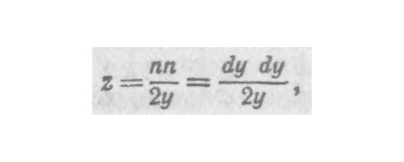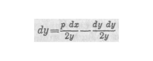 Далее, в соответствии с характеристикой кривой, уу=рх, где р — параметр, отсюда в соответствии с правилом дифференцирования 2y dy=p dx и dy= p dx/2y. Но если умножить (y+dy) само на себя и сохранить все произведение, не отбрасывая площадь дифференциала, тогда, если подставить возросшие величины в уравнение кривой, окажется, что действительно. Следовательно, была допущена ошибка, когда сочли, что, приведшая к увеличению истинного значения и вытекающая из ошибочного правила дифференцирования. и величина этой второй ошибки Следовательно, обе ошибки равны друг другу и взаимно уничтожаются; первая ошибка, приведшая к уменьшению истинного значения выражения, исправлена второй ошибкой, увеличивающей его значение.