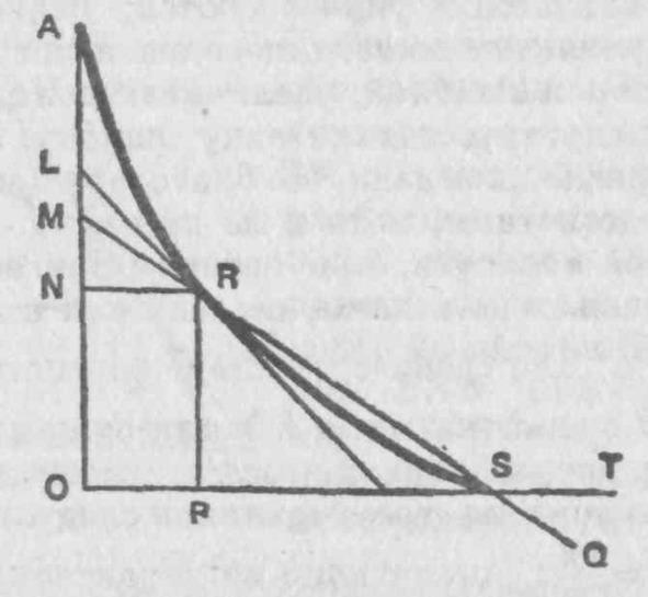 AT в точках R и S. Положим, что LR — касательная в точке R, AN — абсцисса, NR и OS — ординаты. Продолжим AN до пересечения с О и проведем RP параллельно NO. Положим, что AN=x, NR=y, NO=v, PS=z, поднормаль (subsecant) MN=s. Пусть уравнение y=xx выражает характеристику кривой; предположив, что у и х возрастают на конечное приращение, мы получаем: