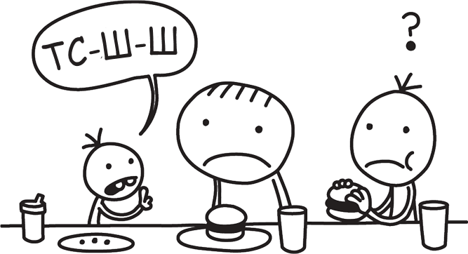 Сначала он злился потому что я всегда забываю рисовать людям носы. А потом сказал что моя книга натолкнула его на одну МЫСЛЬ.