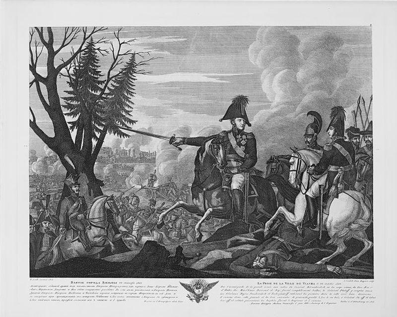 13/25 января Бернадот разбил авангард наш под Морунгеном и до глубокой ночи преследовал оный к Либштадту, не заботясь о первом местечке, оставшемся в тылу победительного корпуса и прикрытом самым наступательным движением оного. К несчастию французского маршала, того же числа к вечеру прибыли в село Лоокен полки: Сумский гусарский и Курляндский драгунский, командованные тогда – первый графом Петром Петровичем Паленом, а последний флигель-адъютантом князем Михаилом Долгоруким. Приметя, что пушечный гул более и более подвигается к Либштадту, Пален счел за стыд оставаться в бездействии тогда, как другие дерутся, и рассудил самовольно пуститься в тыл французского корпуса. Между тем, дабы не оставить занятый им пункт, который мог входить в состав дальнейших предначертаний главного начальства, он к отважности соединил и благоразумие, взяв из всего отряда только три эскадрона драгун и два эскадрона гусар, с коими помчался на Экерсдорф и Гимельфорт и прибыл в глубокую ночь к Морунгену, упраздненному от войск, но заставленному тяжестями французского корпуса. Пален и Долгорукий немедля ворвались в улицы и разбудили острием и выстрелами стражу корпусной квартиры, покоившуюся под покровом победы. Все, что ни находилось в Морунгене, все попалось в руки эскадронам нашим, так что 15/27 числа, когда Бернадот, вследствие наступательного на него движения всей нашей армии, возвратился с корпусом своим в Морунген, то не нашел в нем ничего, кроме одних мертвых тел, изрубленных повозок и носимых ветром бумаг его канцелярии. От карет и верховых лошадей до последней рубашки Бернадота – все досталось в добычу предприимчивым исполнителям сего подвига[12].