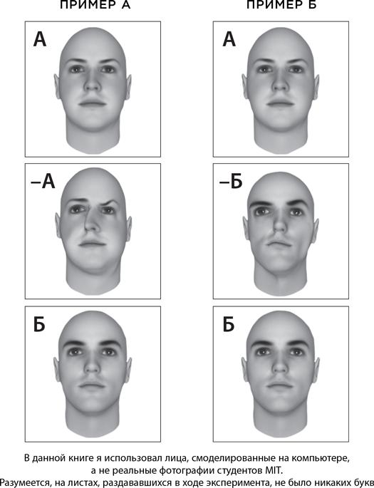 Как-то раз я принялся подлавливать студентов MIT, спешивших на занятия из одного корпуса университета в другой, и просить разрешения сфотографировать их для моего исследования. В ряде случаев я получил в ответ косые взгляды, несколько человек просто развернулись и ушли. Однако большинство студентов были счастливы принять участие в исследовании, и вскоре в моей цифровой камере оказалось множество изображений улыбающихся молодых людей. Я вернулся в офис и распечатал 60 фотографий: 30 женских и 30 мужских.