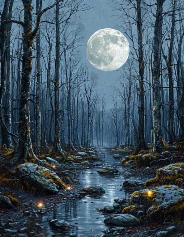 Этот лес являлся местом, где реальность переплеталась с фантазиями, а тени говорили на своём, непонятном людям языке. Высокие деревья с мрачными кронами, сплетёнными в плотный купол, закрывали небо, создавая вечный сумрак. Их корни, словно длинные пальцы, впивались в землю, образуя причудливые узоры, напоминавшие древние руны.