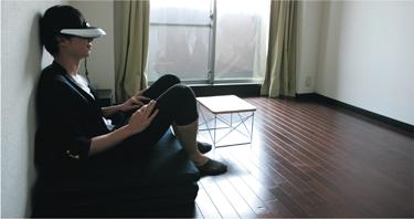 Здесь мы видим Хидзи, надевшего очки виртуальной реальности от Sony. Он избавился от телевизора, но по-прежнему может наслаждаться своими любимыми передачами — фильмы ужасов особенно пугают, если их смотреть таким способом.
