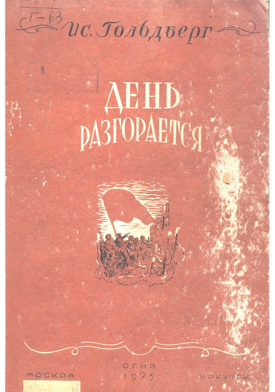 Книга вышла в Иркутском ОГИЗе самом начале 19366 года довольно значительным тиражом – 10 тысяч экземпляров. В планах издательства на 1937 было второе ее издание7, однако после вскоре последовавшего ареста и «разоблачения врага народа» ни о каких переизданиях речь идти уже конечно не могла. Более того, все книги Гольдберга, имевшиеся в библиотеках и книготорговых точках, изъяли. Что-то закрыли в спецхран, а там, где его не было (а не было его практически нигде), наверное, просто списали. Например, в спецфонд Иркутской областной библиотеки по акту от 8 декабря 1938 поступило всего лишь 12 наименований (24 экземпляра) его книг8, среди которых романа «День разгорается» не было. Не сохранилось этой книги и в научной библиотеке Иркутского государственного университета. На сегодняшний день она является настоящей библиографической редкостью9.