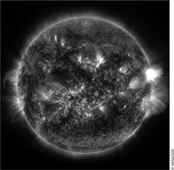 Есть мнение, основанное на наблюдении большого количества звезд, похожих на Солнце, что где-то раз в тысячу лет на нашей звезде происходят достаточно мощные вспышки, в сотни и тысячи раз более мощные, чем уже наблюдавшиеся солнечные. Они сопровождаются не только усилением электромагнитного излучения на некоторых длинных волнах, но и так называемым корональным выбросом. Поток солнечной плазмы устремляется во внешнее пространство. Если бы такое событие произошло сейчас (и выброс был бы направлен на Землю), то оно вывело бы из строя практически все космические аппараты, а также нарушило бы систему электроснабжения и радиосвязи на Земле. Вот это, наверное, и есть самая большая космическая проблема для нашей цивилизации — не падение астероидов, не что-то, что прямо приведет к исчезновению жизни на Земле (и что происходит примерно раз в десятки миллионов лет), а то, что выведет из строя электрические приборы, из-за чего перестанут работать спутники и прекратится подача электроэнергии. Это может быть крайне серьезной проблемой. Правда, повторим, такое на Солнце происходит редко. Солнце — очень спокойная звезда и поэтому воспринимается как далекий и безобидный объект. Пока еще, максимум, чего нам приходится опасаться, — это обгореть на пляже.