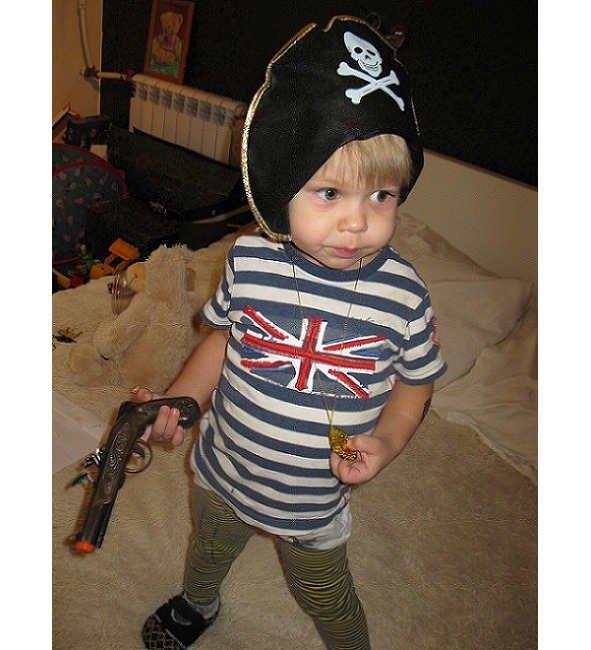 В дверь позвонили. Я открыл. На пороге стоял пират Билли Бонс (это мой внук Гордей, 2,5 года ему. Смотри фото!). Он ткнул мне пистолем в живот и сказал: