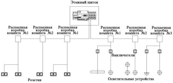 Также надо узнать хочет ли клиент видеть распредкоробки или нет. Если не хочет –это удорожание работы и материалов. Если согласен на распредки (что чаше) -то схема упрощается.