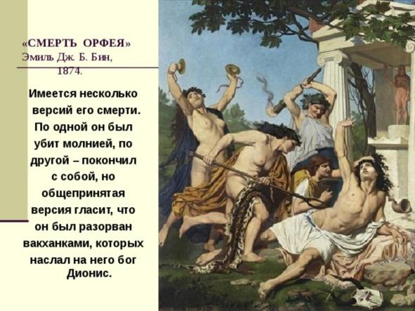 Вторые, кто не мог справится со своим характером (норовом) и настойчиво продолжали учить других жизни — заканчивали плачевно. Тут можно вспомнить растерзанного Орфея. В зрелом возрасте он стал проповедовать поклонение природе, написал гимны наукам — физике и астрономии.