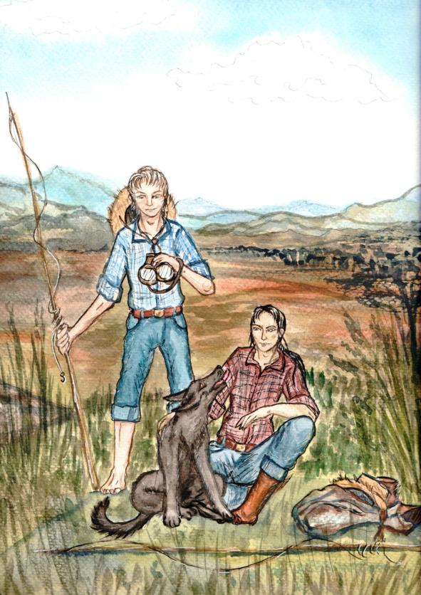На заднем дворе, кроме снующих туда-сюда ковбоев и прислуги, нашелся кое-кто, вполне на эту компанию тянущий. На крылечке в тени сидел темноволосый парень примерно его лет — ну, или самую капельку постарше, уж больно рослый. Одет обыкновенно — джинсовые штаны, подвернутые до колен, клетчатая рубашка; примерно как и сам Джейк, только, в отличие от джейковых, вещи на сидящем были все потрепанные, явно для работы только и используемые. А что, обычное дело; чем-то иным этот незнакомец тоже не был слишком примечателен, если уж честно. Зато у ног его дремал большой темно-серый пес, узкомордый, как волк, и с могучим загривком. А сам паренек был занят какой-то тросточкой — сидел, вырезал на ней ножом мелкие узоры. Рядом валялся полупустой колчан с охотничьими стрелами: видимо, до того, как заняться резьбой, мальчишка проверял наконечники, а может, и прилаживал новые на пустые древки. То есть — все-таки не бездельничал. Ага.