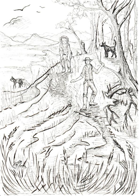 Солнце пекло нещадно — и это еще не полдень ведь! Соломенная шляпа с обтрепанным краем хоть и выглядела слегка по-дурацки, а от горячих лучей, бьющих в самую макушку, спасала неплохо. Впрочем, переживать насчет вида шляпы Джейку точно не стоило — Дэф нацепил точно такую же, ничуть не смутившись ее простецкостью. Эти шляпы они нашли там же, на конюшне — джейкова была чуточку больше, чем надо, и он попросту сдвинул ее назад, чтоб не наползала на глаза. Вот, так-то гораздо лучше!