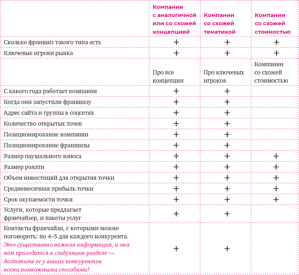 Теперь, когда вы нашли всех франчайзеров, — созвонитесь с ними и запросите у них все необходимые вам данные. Обязательно ли заниматься этим самостоятельно? Вовсе нет. Это как раз тот случай, когда можно — и даже нужно — привлекать команду. Администратор, офис-менеджер, секретарь — любой из этих сотрудников сможет искать и обзванивать конкурентов.