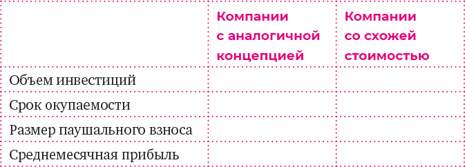 Сравниваем средние экономические показатели аналогичных франшиз и компаний со схожей стоимостью
