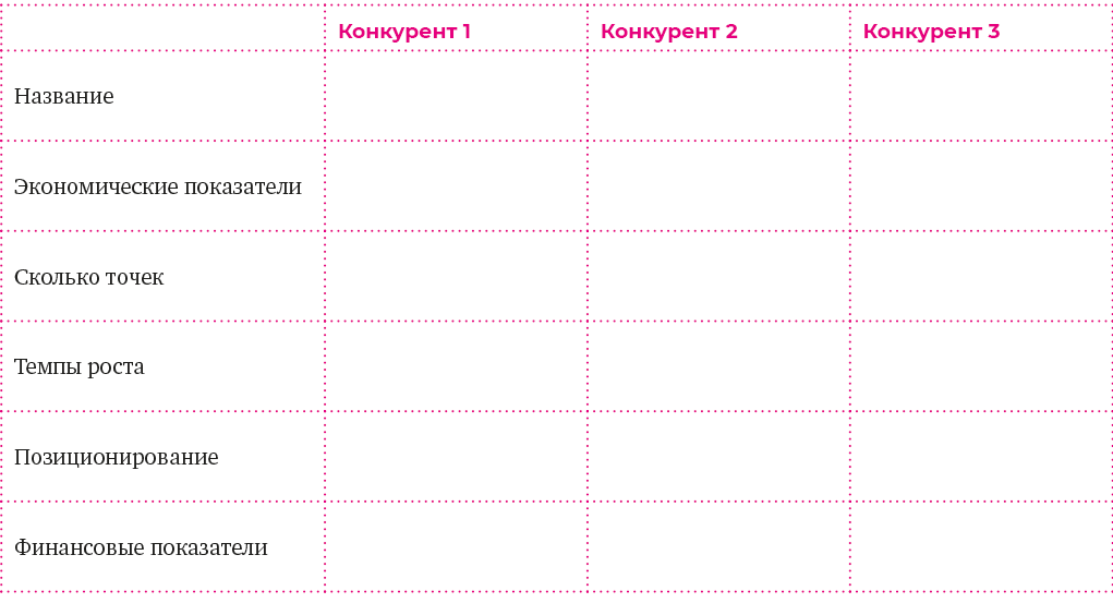 Всю информацию о конкурентах вносите в шаблон анализа конкурентов. Его вы найдете у нас на сайте по адресу: lyashevsky.ru/fr_analysis