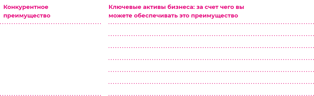 Из примеров видно: чтобы сделать вывод, тиражируется ли ваше конкурентное преимущество, нужно понять, тиражируются ли ключевые активы вашего бизнеса — те самые активы, которые и обеспечивают ваше преимущество перед конкурентами. Заполните таблицу.