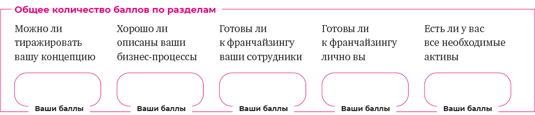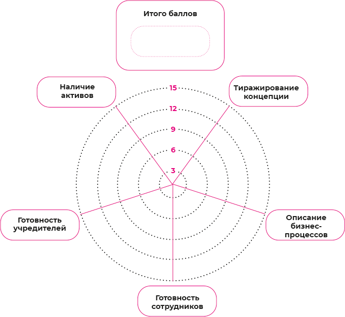 Теперь, когда вы оценили свою готовность к франчайзингу по всем фронтам, — заполните диаграмму. Сделать это очень просто.