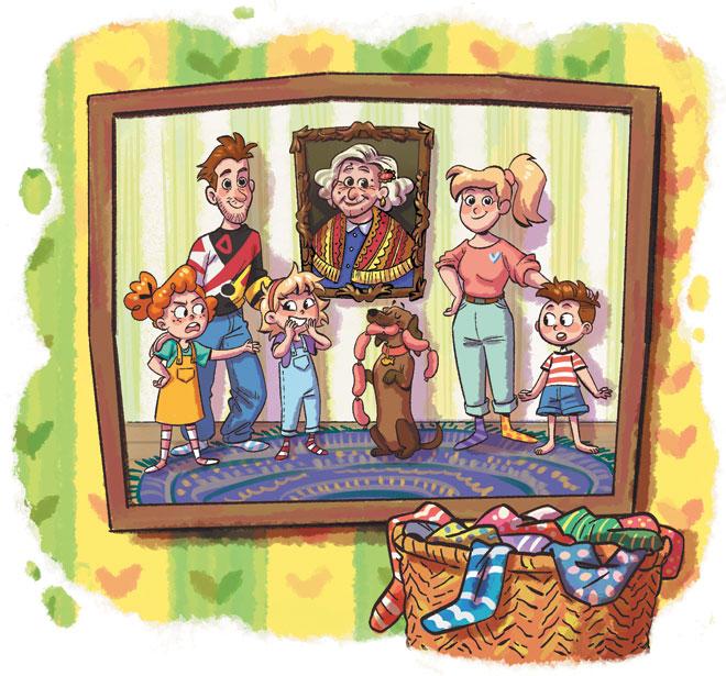В спальне родителей напротив кровати стоит высокая плетёная корзина, она досталась Аусме в наследство от бабушки Паулины. В этой корзине лежат сотни разноцветных шерстяных носков. Самое удивительное то, что двух одинаковых носков там бы не нашлось — все совершенно разные.