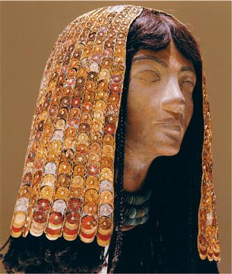 ↑ Головной убор жены фараона Тутмоса III. 1469–1436 гг. до н.э.