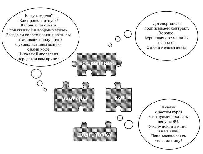 В переговорах, по аналогии с военным искусством, можно выделить два этапа: бой и маневр.