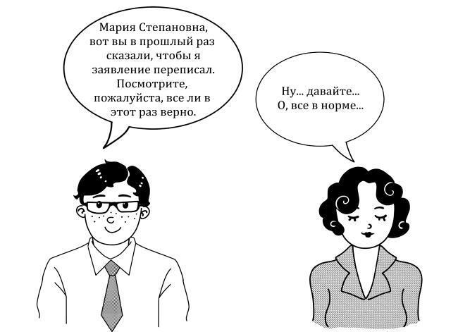Диалог ниже демонстрирует типичное применение этого приема.
