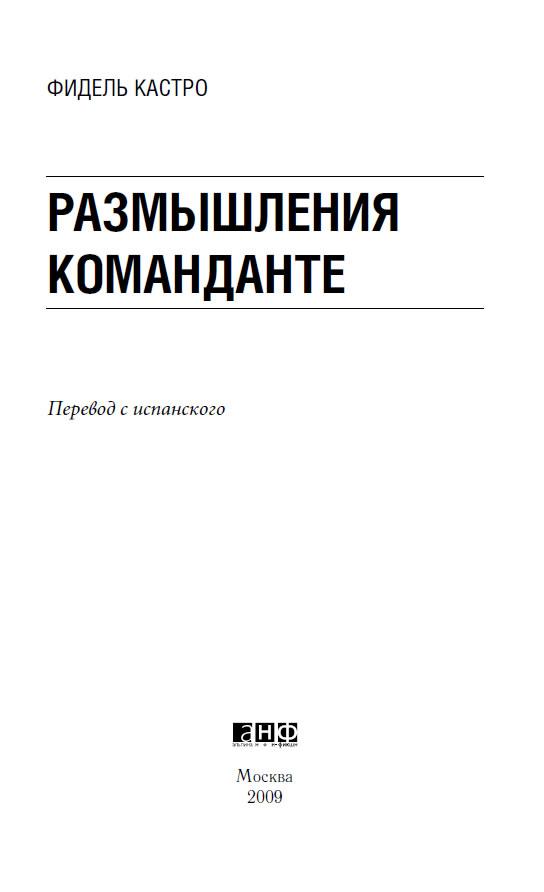 Размышления команданте / Фидель Кастро; Пер. с исп. — М.: Альпина нон-фикшн, 2009.