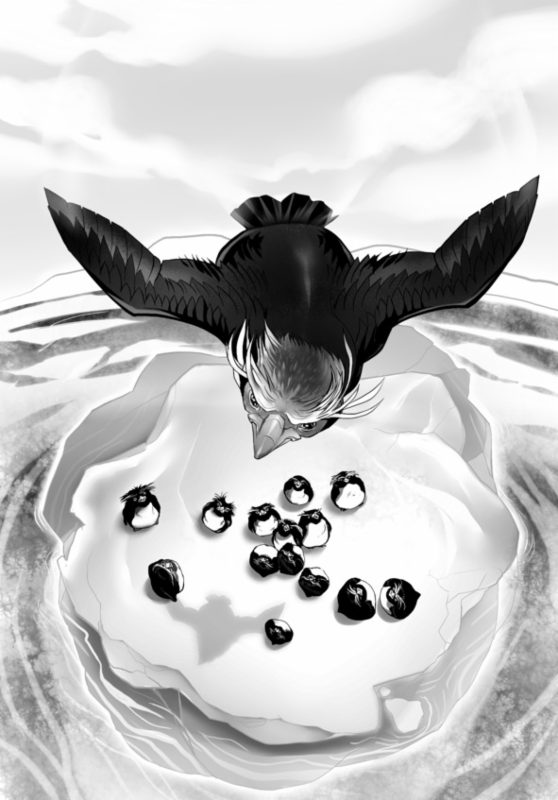 Еще Пингвин с завистью смотрел на симбиоз собак и людей. В экстремальных для жизни условиях они держались вместе, выручали друг друга. Несмотря на принадлежность к разным биологическим видам, собаки и люди жили как бы одной семьей. «А что пингвины? Мы сбиваемся в кучку, только когда холод становится совсем невыносимым даже для нас, чтобы хоть немного согреться. Это скорее инстинкт самосохранения, а не какое-то осознанное стремление к коллективному существованию. Семья… Да, мы считаемся однолюбами и верными партнерами, но опять-таки — это объясняется лишь заботой о потомстве, и семейная жизнь длится только в период высиживания яиц и в первый год выращивания птенцов. Да и как тут будешь неверным, когда нас на этой гребаной льдине всего несколько десятков и самки все наперечет?»
