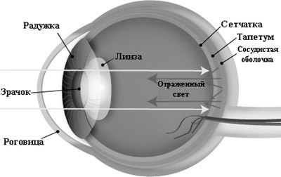 Мал. 1.5. Очі у котів «світяться» завдяки тапетуму