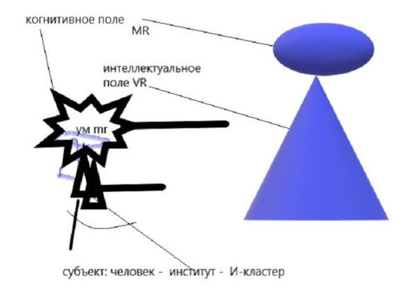 Если, как сейчас, есть один ум, анализирующий эту картинку, то есть и индукция когнитивно–ментального поля с односторонней коммуникацией. То есть ум субъекта, неповреждённый болезнью или «охранителями» («охранитель» — значение раскрывается далее, в тексте) так работает в МИ-поле (ментальном и информационном) социума.