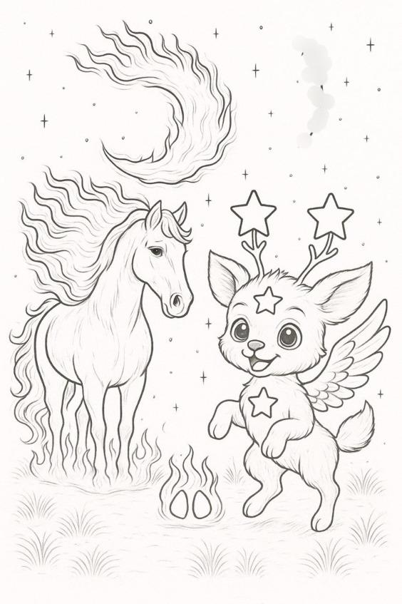 ВОЛШЕБНАЯ СКАЗКА — РАСКРАСКА (БЕЗ СЛОВ), О ПУТЕШЕСТВИИ ОЛЕНЁНКА ТВИШИ К ЗВЁЗДНЫМ НАКШАТРАМ.