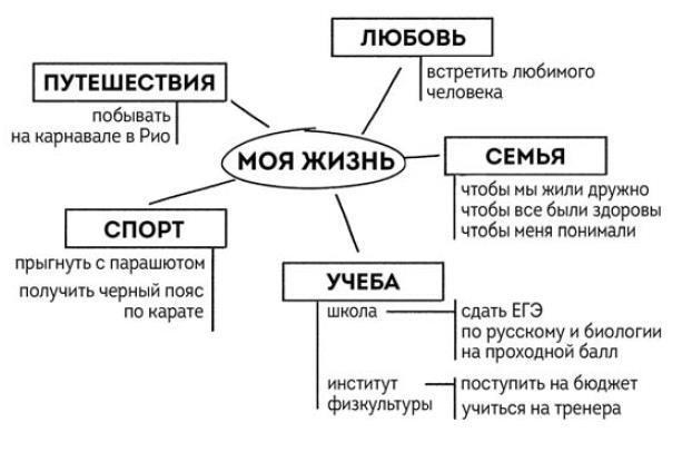 Попробуй сделать карту своих желаний. Эти желания могут касаться учебы и будущей профессии, дружбы и любви, денег и увлечений. Все это называется ключевыми областями жизни.