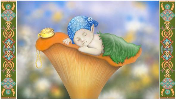 Но древесная фея его не слышала. После долгой дороги она так устала, что заснула, прислонясь к тому же боровику.