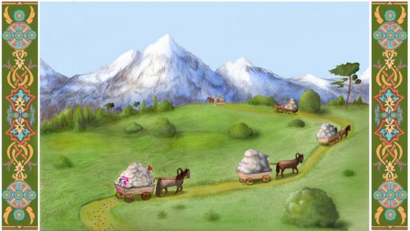 За гостями следовали возы, гружёные жемчугами и изумрудами; фургоны с алмазами; слепящие глаз колесницы, доверху набитые редкостными рудами и слитками наичистейшего золота. Всех радушно встречали хозяева, ушастые гномы.