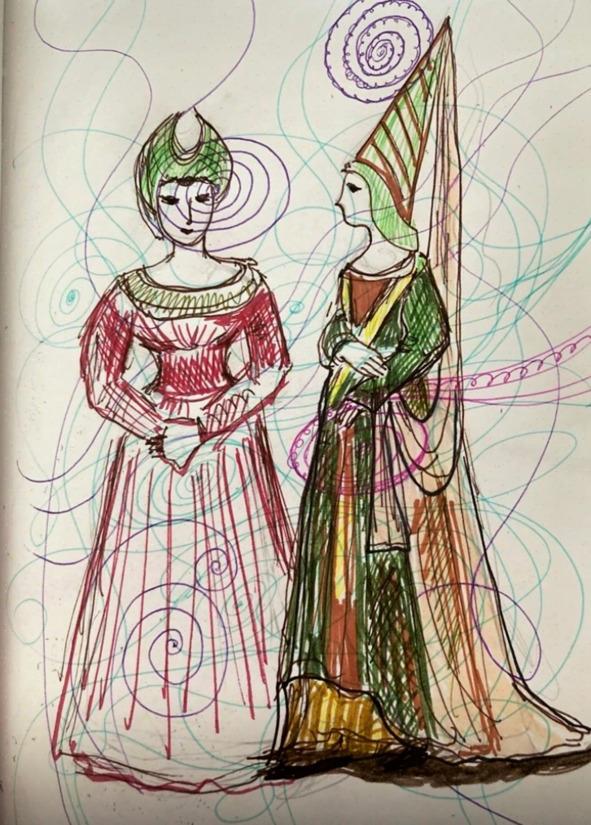 Ткачихи, сидя у своих станков, ткали сложные узоры судеб. Нити скользили в ритме музыки, переплетаясь в причудливые узоры.
