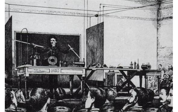 В 1888—1895 годах Тесла занимался исследованиями магнитных полей высокой частоты. Эти годы были наиболее плодотворными: он получил множество патентов на изобретения. Руководство Американского института электро-инженеров пригласило Теслу прочитать лекцию о своих работах. 20 мая 1892 года он выступил перед выдающимися электротехниками того времени и имел большой успех. Там он продемонстрировал большое количество своих экспериментов, он зажигал лампочки внося их в переменное электромагнитное поле. Он демонстрировал, как передавать электричество без проводов, управлял молниями и при помощи рук пропускал через своё тело напряжение в миллионы вольт. Это был бешенный успех, ему устроили овацию и впервые назвали человеком из будущего.