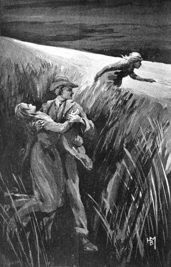 In one moment, as it seemed, the thread of fire ran along to the main body of the corn, and in an inconceivably short space of time, the acres of golden grain were a sheet of flame. The villagers, the police, both Cyril and Bella, ran for their lives, and it took them all their speed to escape the eager flames which licked their very heels. Pell-mell down to the boundary channel ran everyone. The plank bridge was broken, and many tumbled into the muddy water. Mrs. Vand stood at the window yelling, and clapping her hands like a fiend, and the whole vast fields of wheat flared like a gigantic bonfire.