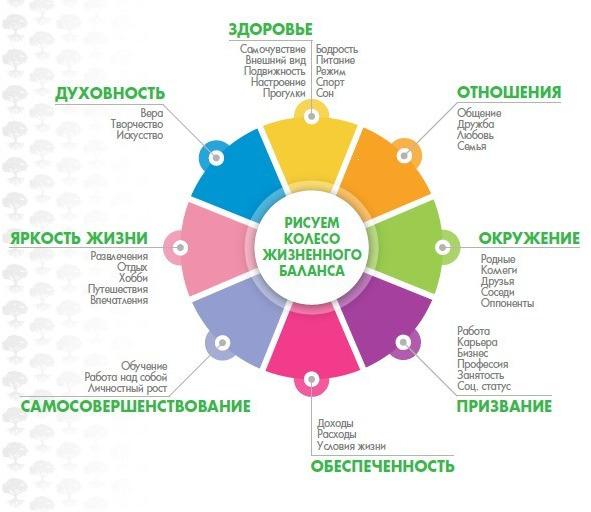 Напишите из колеса жизненного баланса 3–4 самых важных целей.