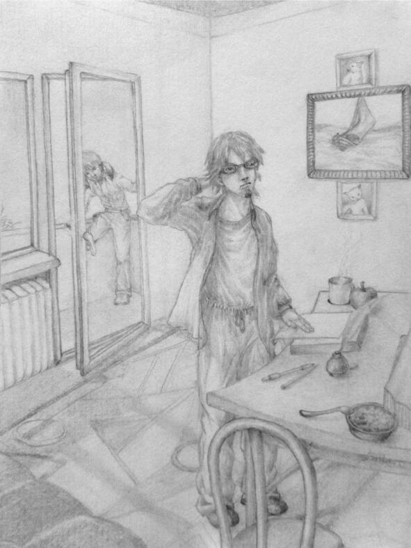 Невозможно адекватно отреагировать на голос в абсолютно пустой квартире. Естественно, я завопил и отскочил, как можно дальше. По пути сшиб табуретку, набил синяк об стол, так что говорящего увидел уже на полу. На меня насмешливо смотрела девочка подросткового возраста, в обычных джинсах и клетчатой рубашке.
