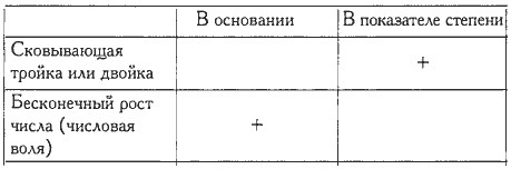 У пространства каменный показатель степени, он не может быть больше трех, а основание живет без предела; наоборот, у времени основание делается «твердыми» двойкой и тройкой, а показатель степени живет сложной жизнью, свободной игрой величин.
