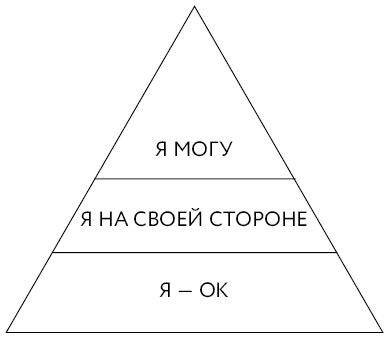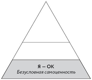 В широком основании этого треугольника — глубинное ощущение своей ценности, которое не связано ни с достижениями, ни с отношением окружающих. Оно просто есть. Это способность любить и уважать себя просто так. В психологии базовая любовь к себе называется безусловной самоценностью. Это фундамент здоровой самооценки. В этой книге мы будем называть это «Я — ОК».
