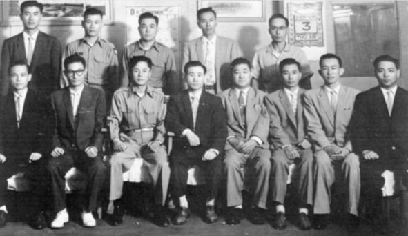 Лидеры первых кванов (слева-направо) Ро Бён Джик, неизвестный, Юн Бён Ин, Чон Сан Суп, Ли Вон Кук. Именно они оказали самое заметное влияние на процесс создания тхэквондо.